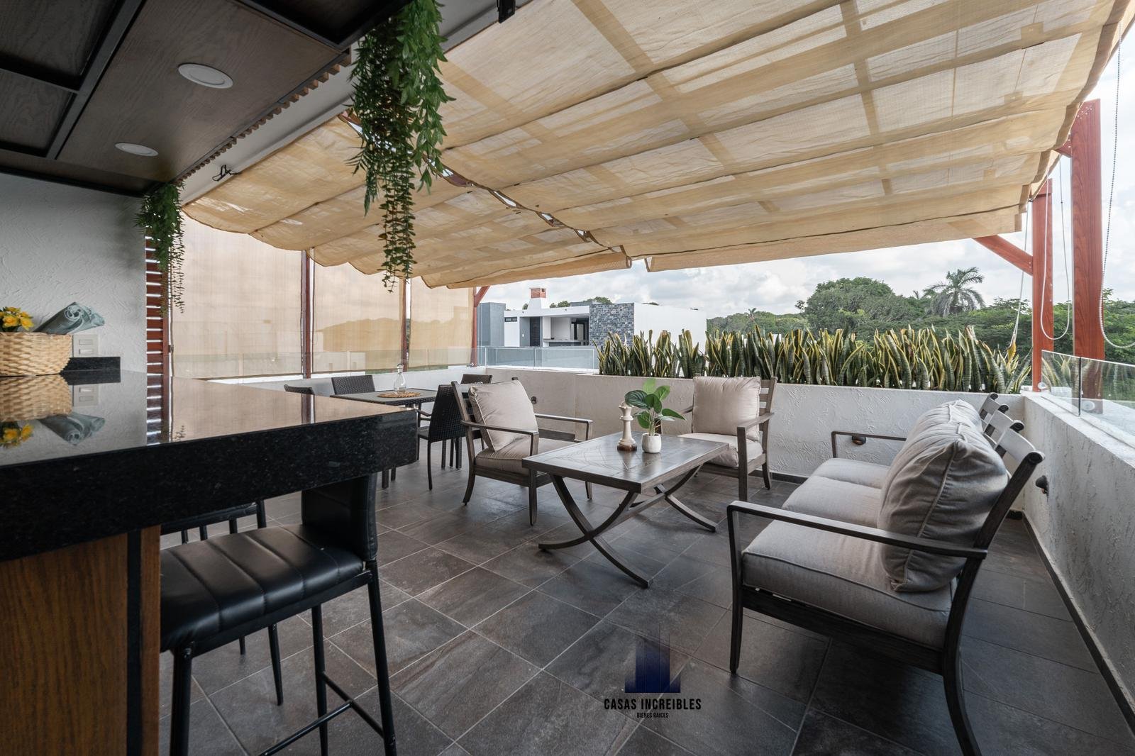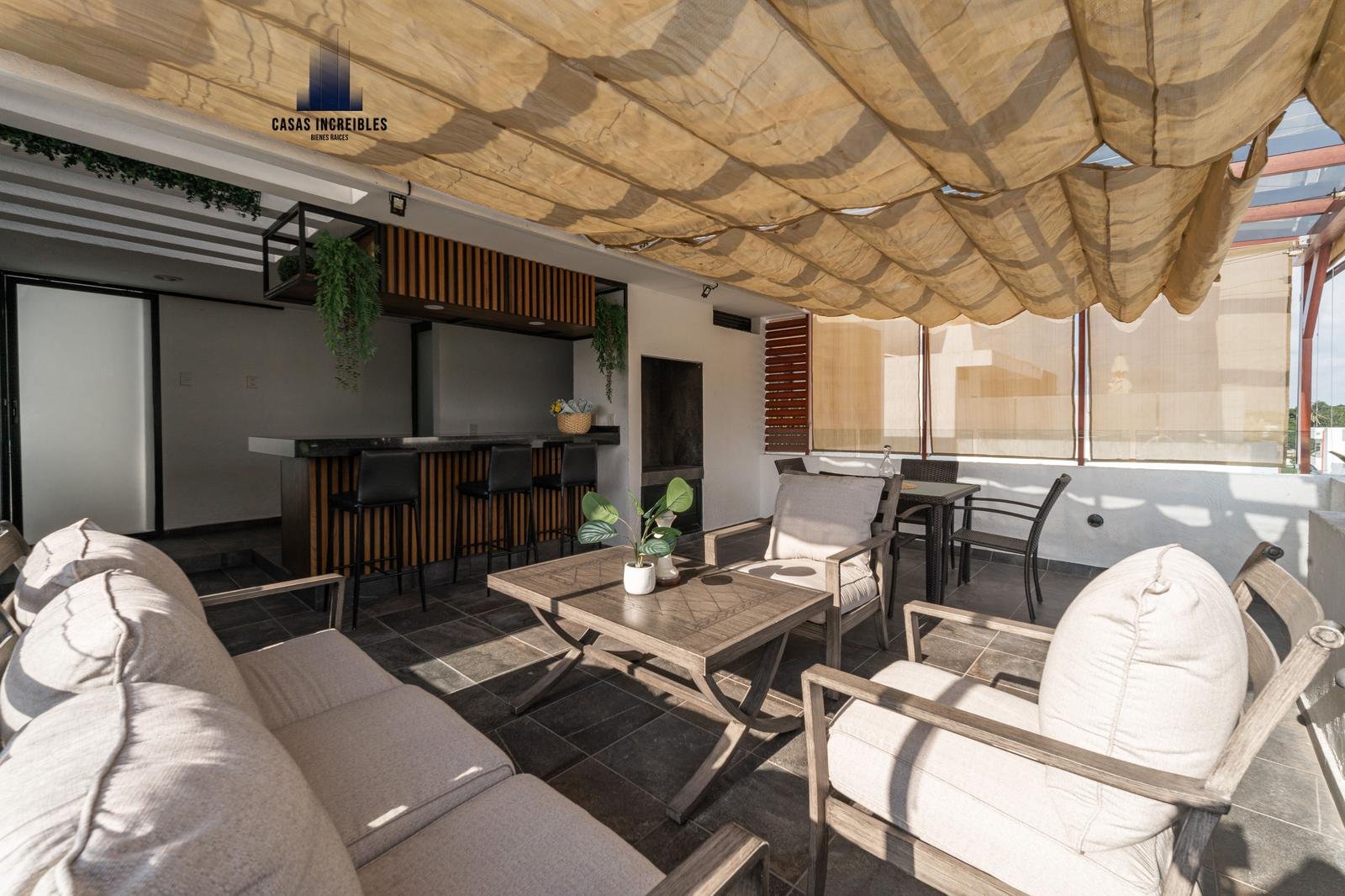TERCER NIVEL: ROOF GARDEN CON BAR Y PERGOLAS, AREA DE GIMNACIO Y OFICINA CON BAÑO COMPLETO, AREA DE LAVADO Y AREA DE TENDIDO, CUARTO DE SERVICIO CON CLOSET Y BAÑO COMPLETO.