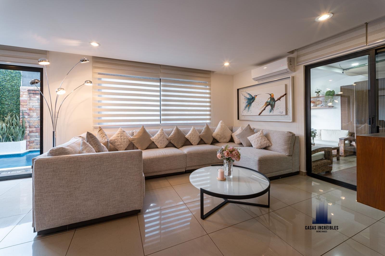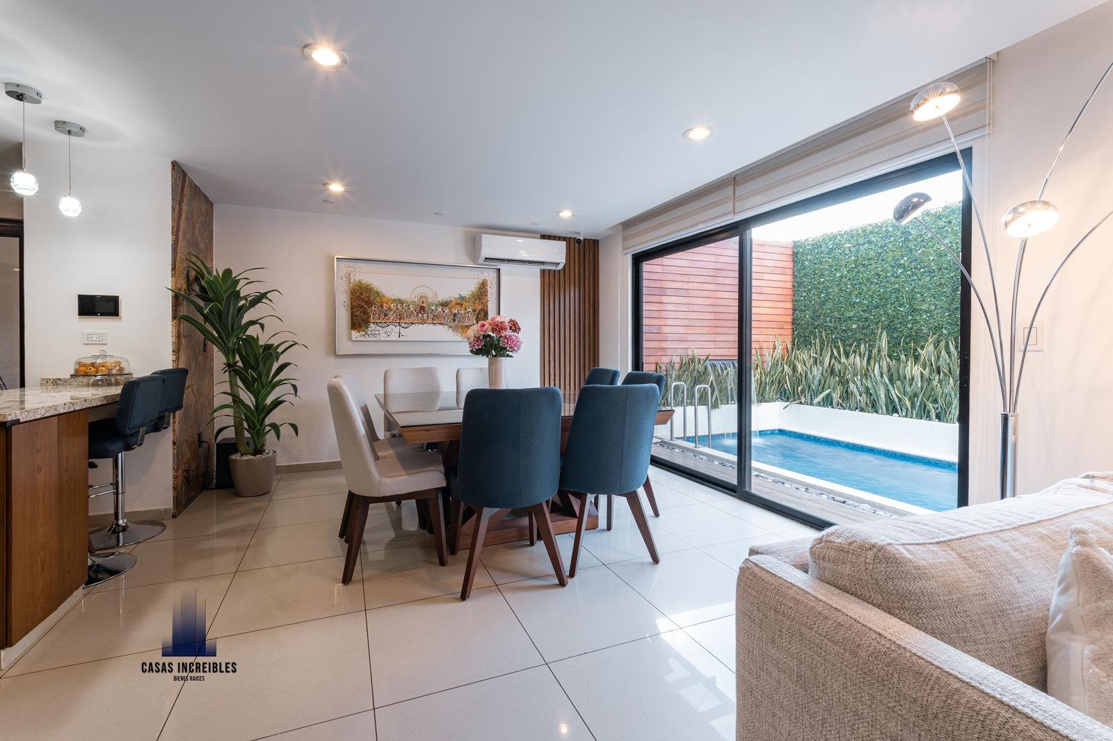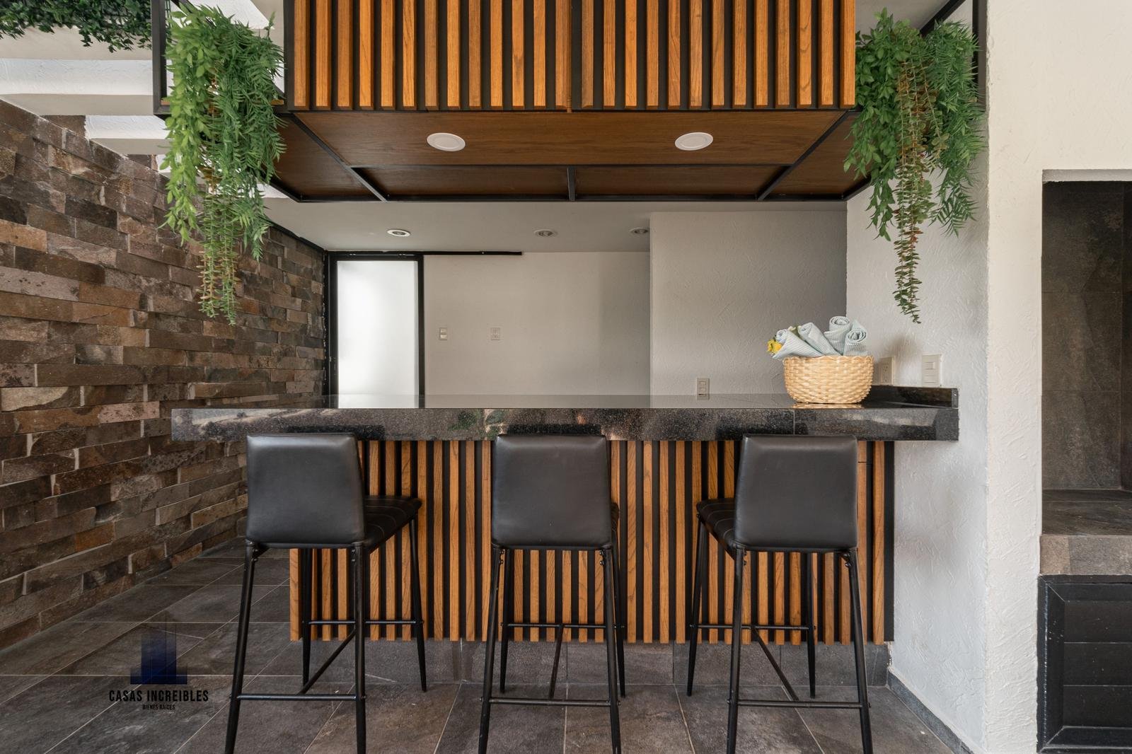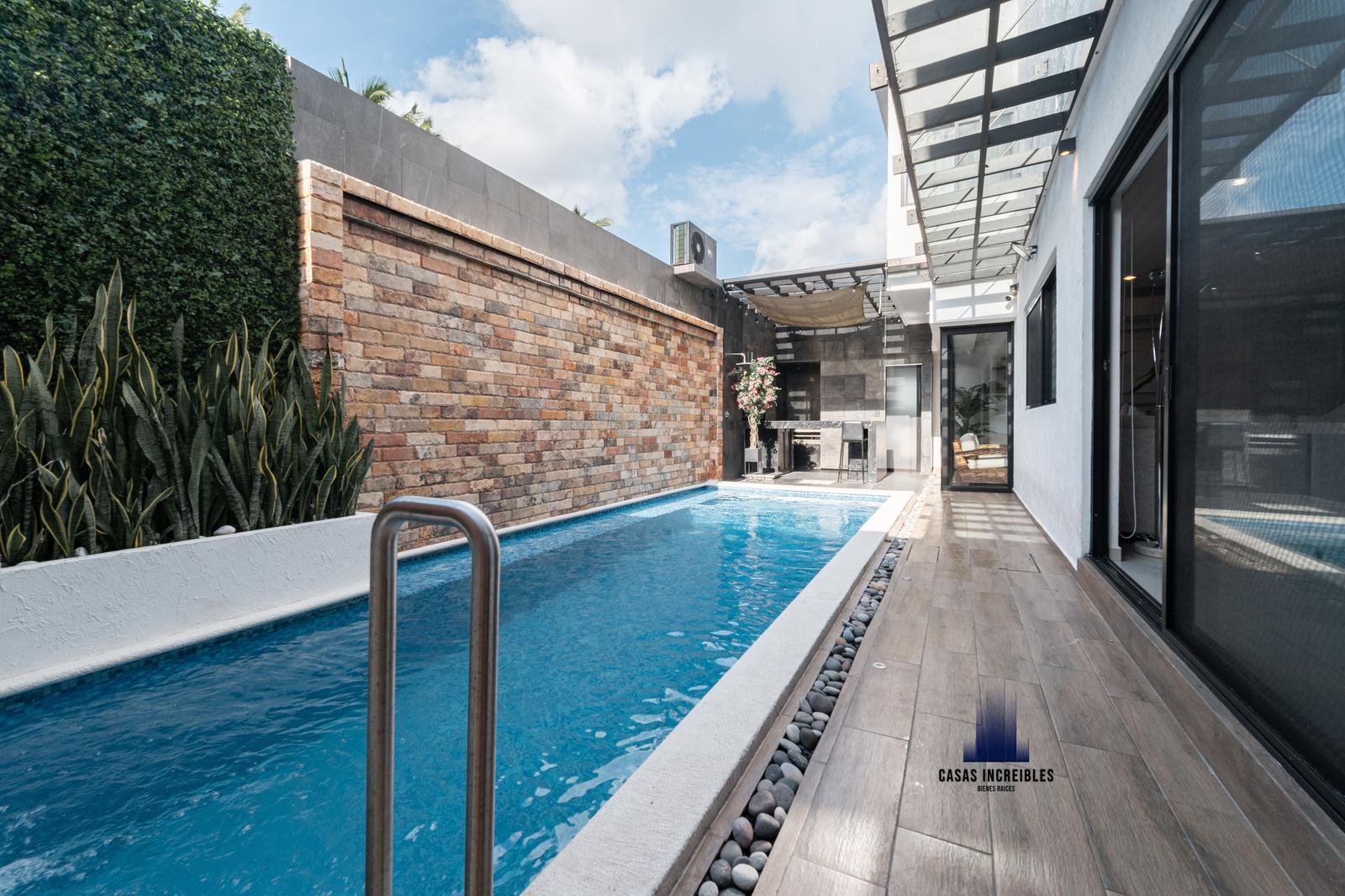 PLANTA BAJA: SALA, COMEDOR, COCINA EQUIPADA, RECIBIDOR, ALBERCA CON CALEFACCIÓN, BAR CON ASADOR, AREA DE JUEGOS CON SALA, ESTACIONAMIENTO PARA DOS AUTOS.