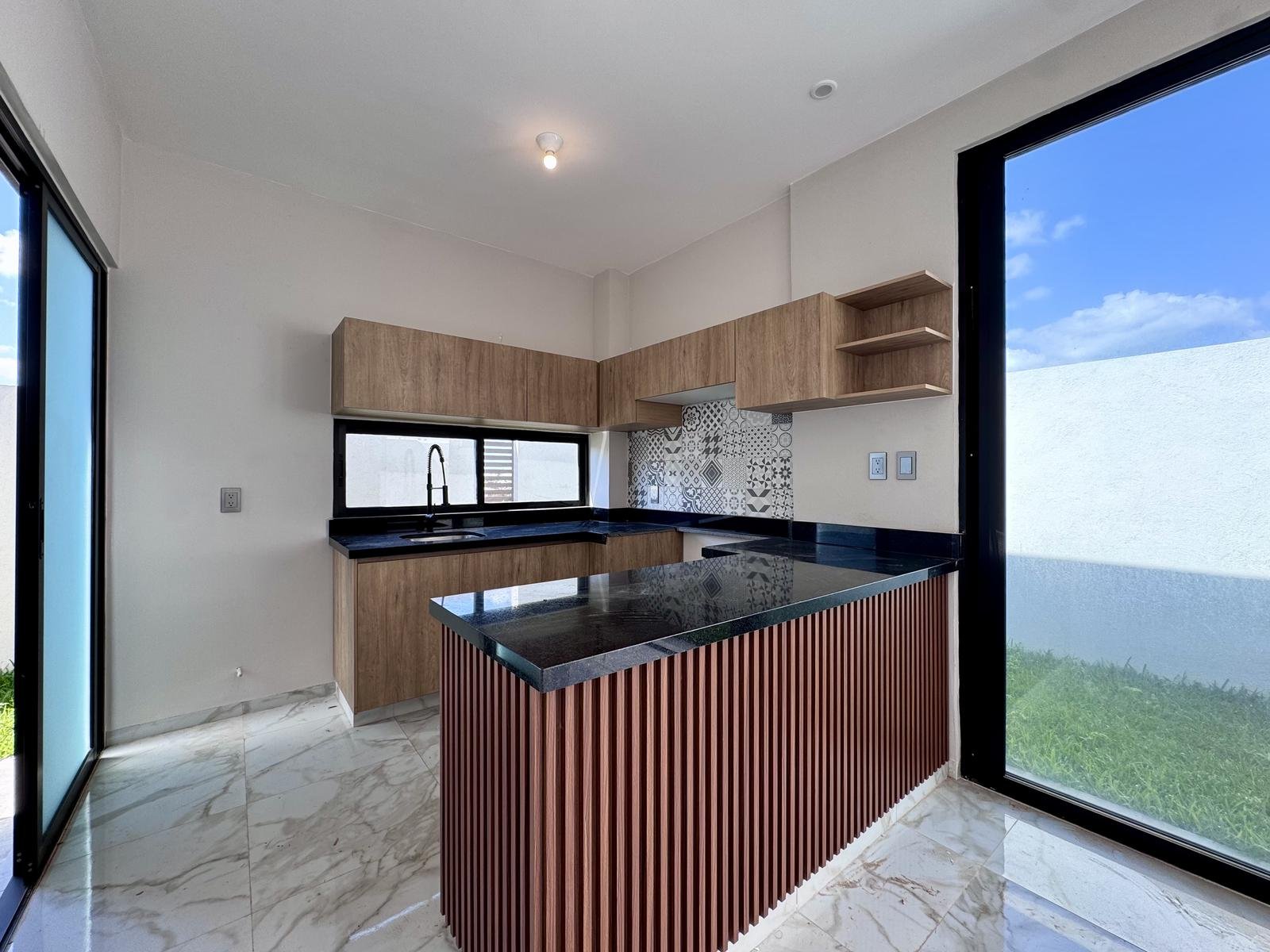 Cocina integral con barra de granito