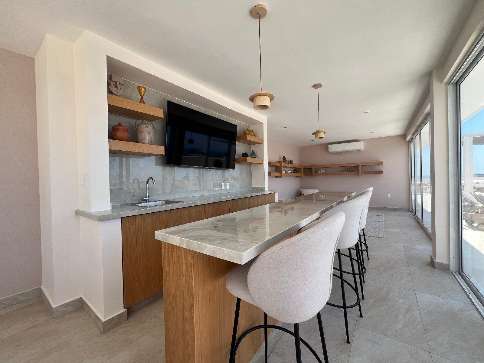 Especatular Rooftop con Alberca, wet bar, gimnasio, bar, grill pit y zona lounge.