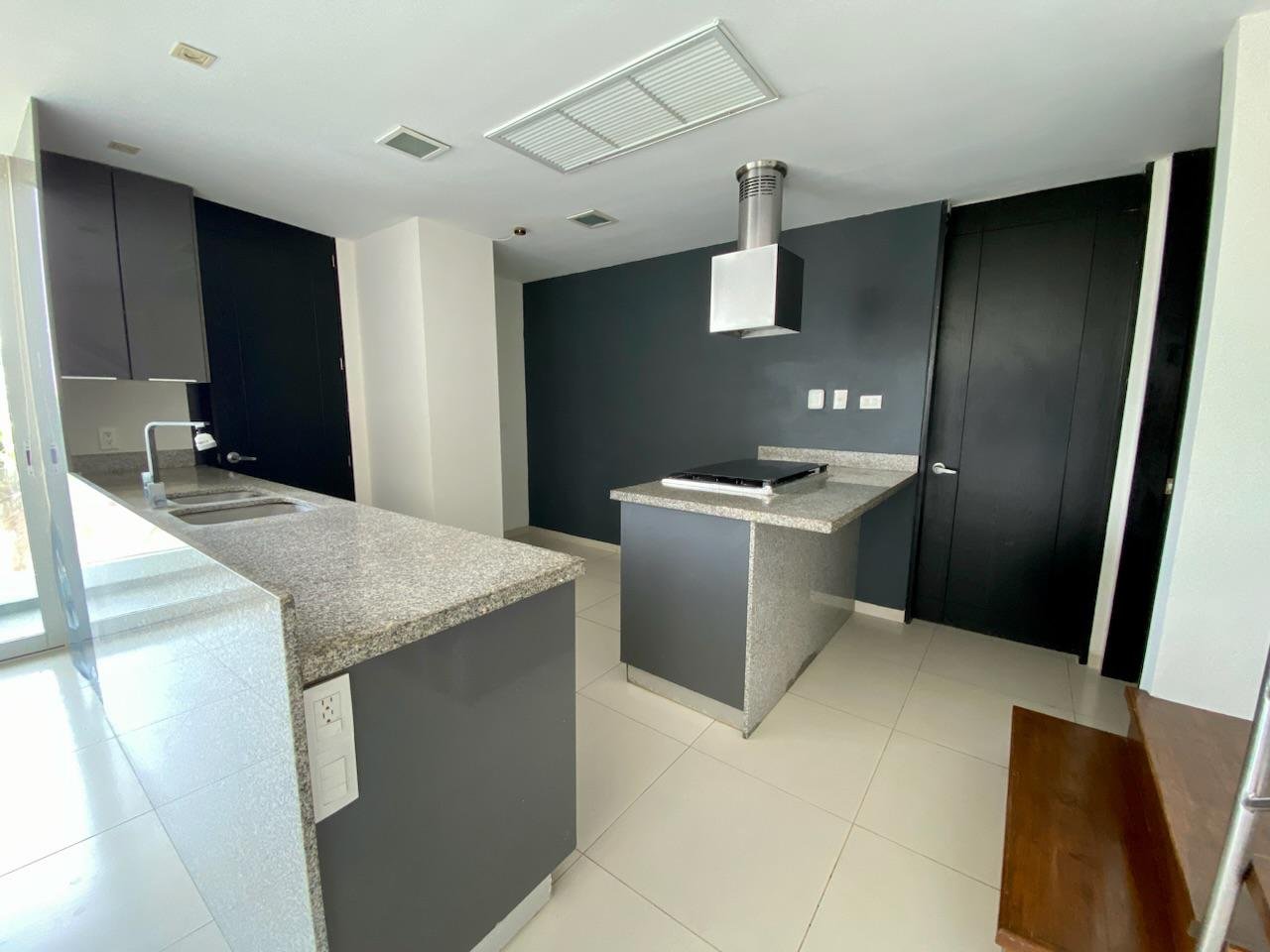 Cocina integral con barra de granito estufa, campana, alacena