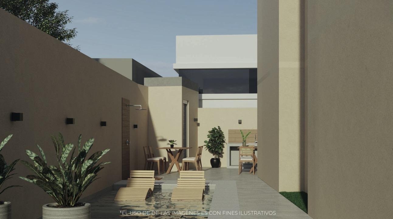 El complejo se complementa con una caseta de vigilancia para tu tranquilidad, una alberca para tus momentos de descanso, y un área de asadores con pérgola, perfecta para convivencias y tardes relajadas
