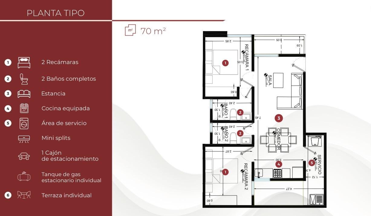 Todos los departamentos cuentan con 2 recámaras, 2 baños completos y 1 cajón de estacionamiento, ideales tanto para quienes buscan vivir cerca de su entorno de estudio o trabajo, como para quienes desean invertir en una zona con alta plusvalía y demanda constante de renta.