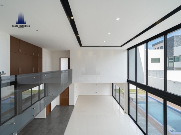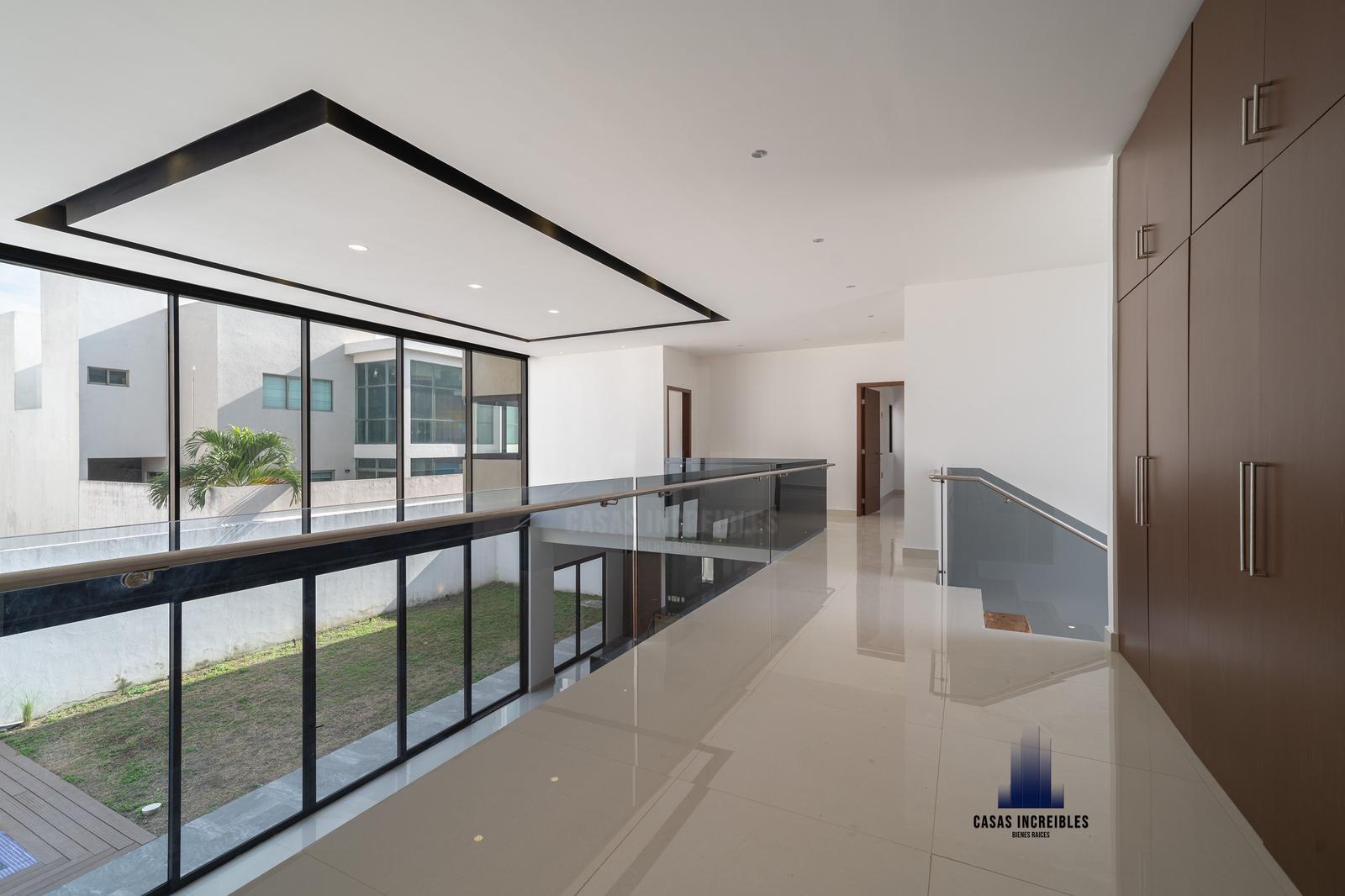 PLANTA ALTA: SALA DE JUEGOS, DOS RECAMARAS SECUNDARIAS CON BAÑO COMPLETO Y VESTIDOR, HABITACION PRINCIPAL CON BAÑO COMPLETO Y VESTIDOR, BALCON, CLOSET DE BLANCOS.