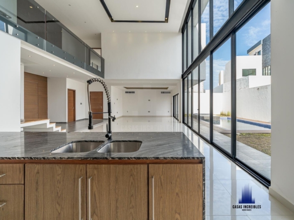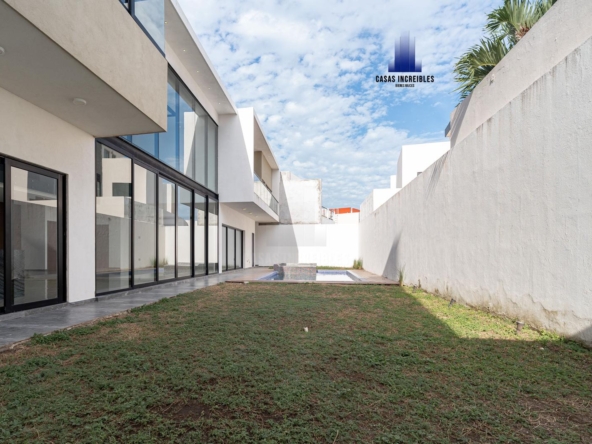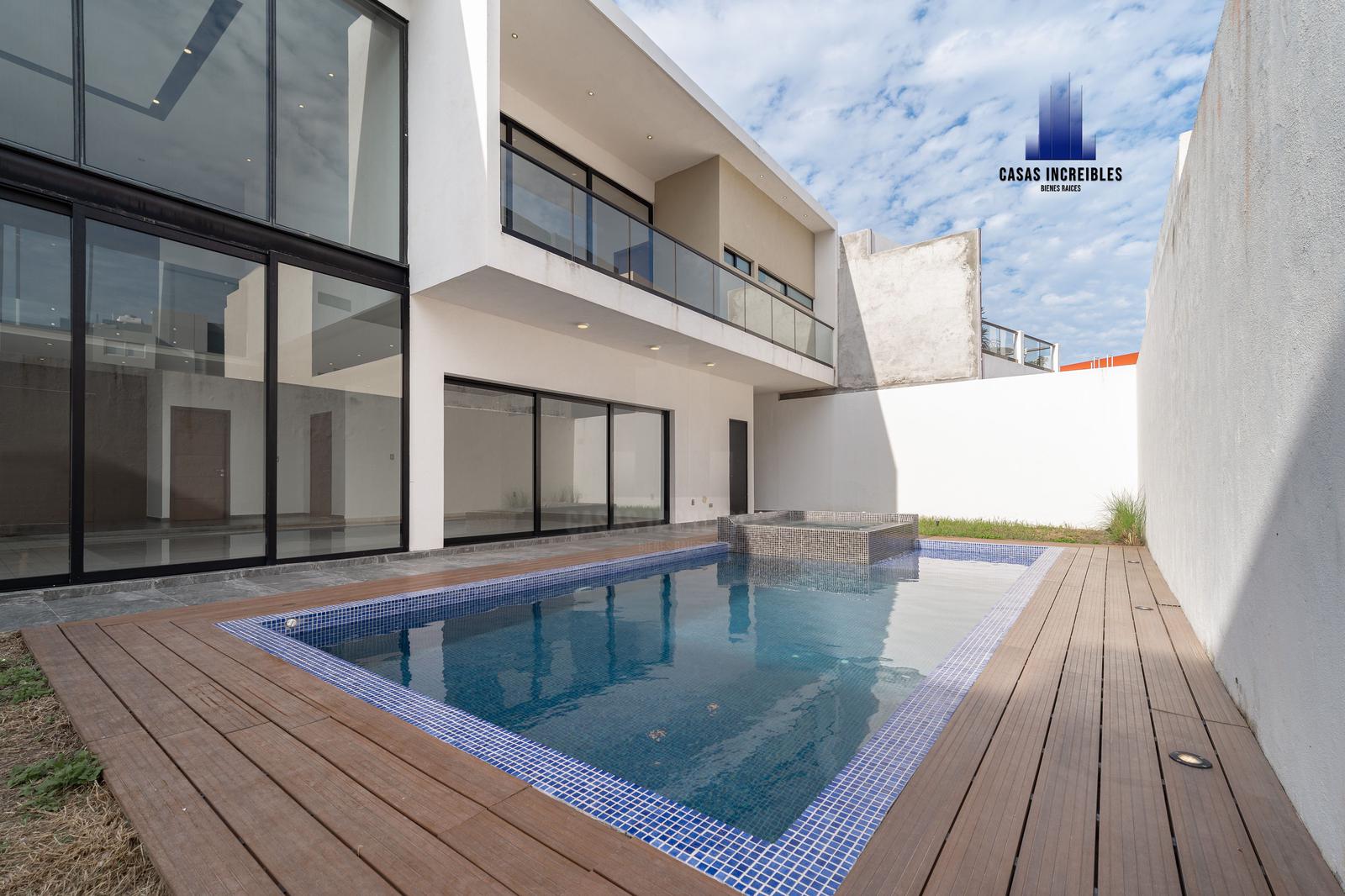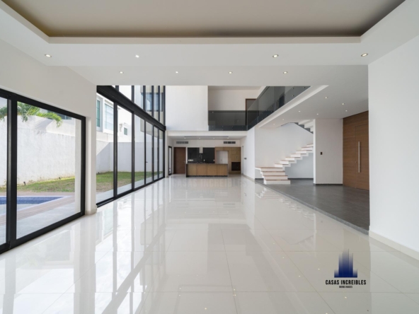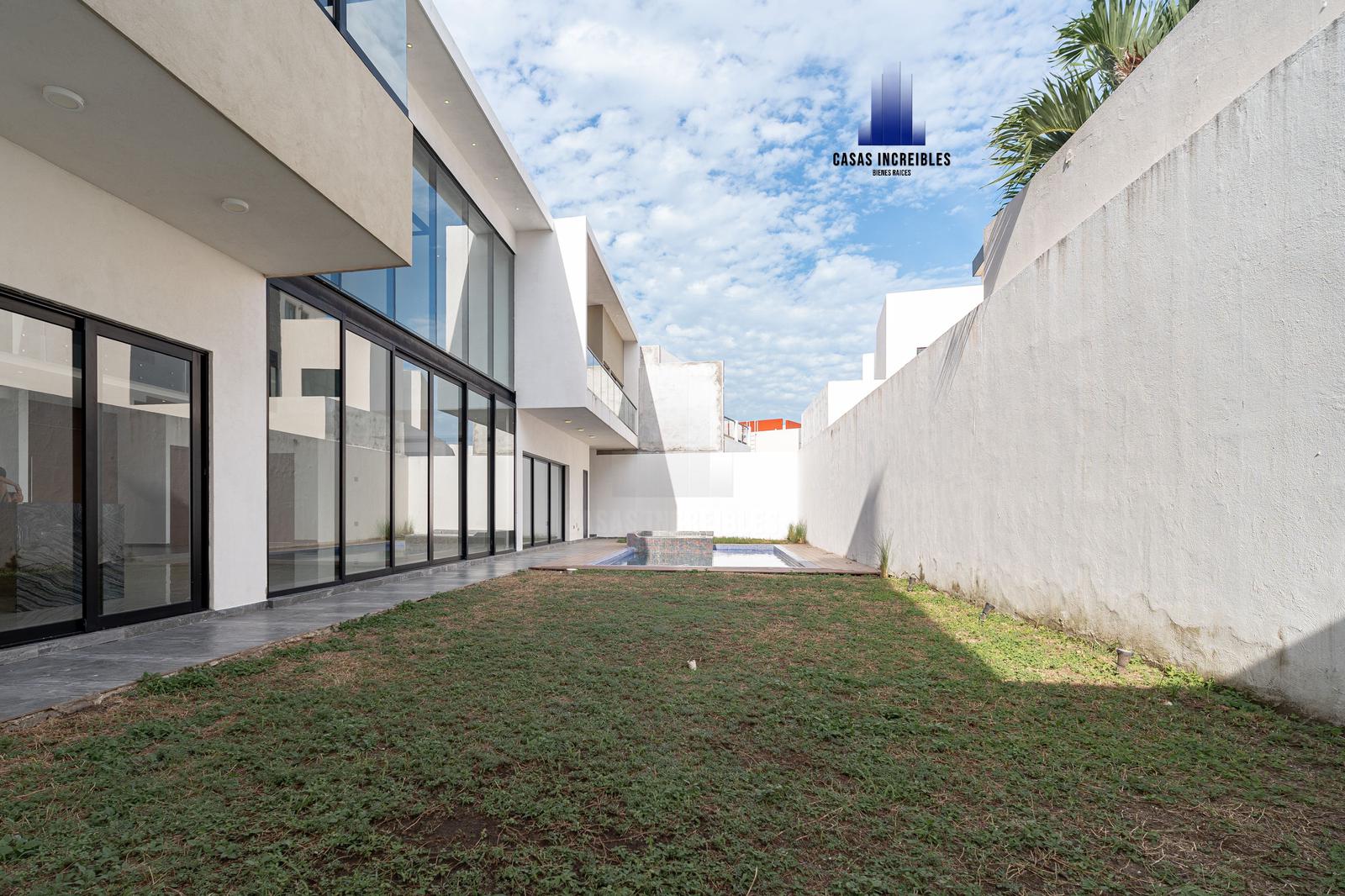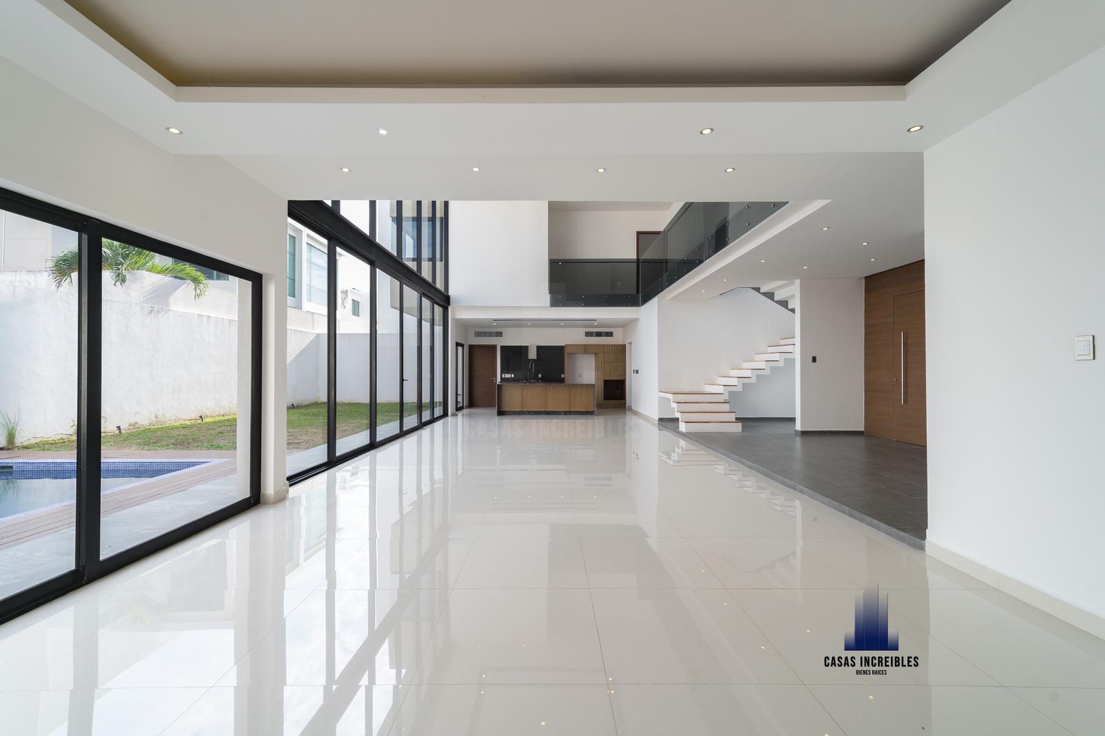 PLANTA BAJA: RECIBIDOR SALA COMEDOR EN DOBLEALTURA, COCINA, AREA DE BAR, JARDÍN, CUARTO DE SERVICIO, CUARTO DE LAVADO, RECAMARA EN PLANTA BAJA CON BAÑO COMPLETO, ALBERCA, PASILLO LATERAL, CUARTO DE MAQUINAS, DOS MEDIOS BAÑOS, GARAGE PARA DOS AUTOS.