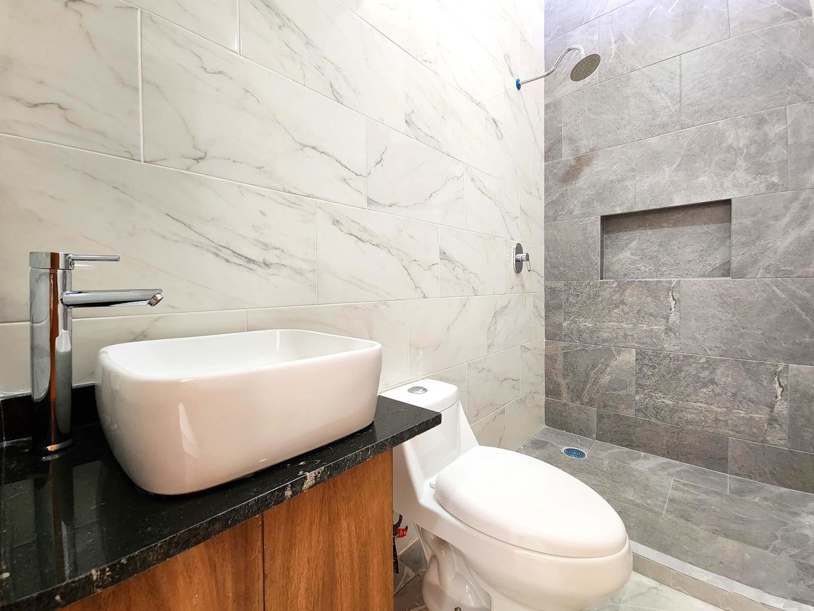 Un baño completo compartido para secundarias.