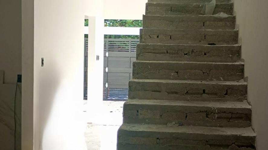 Recámara en planta baja con clóset y baño completo con cancel templado, barra y lavamanos de mármol.