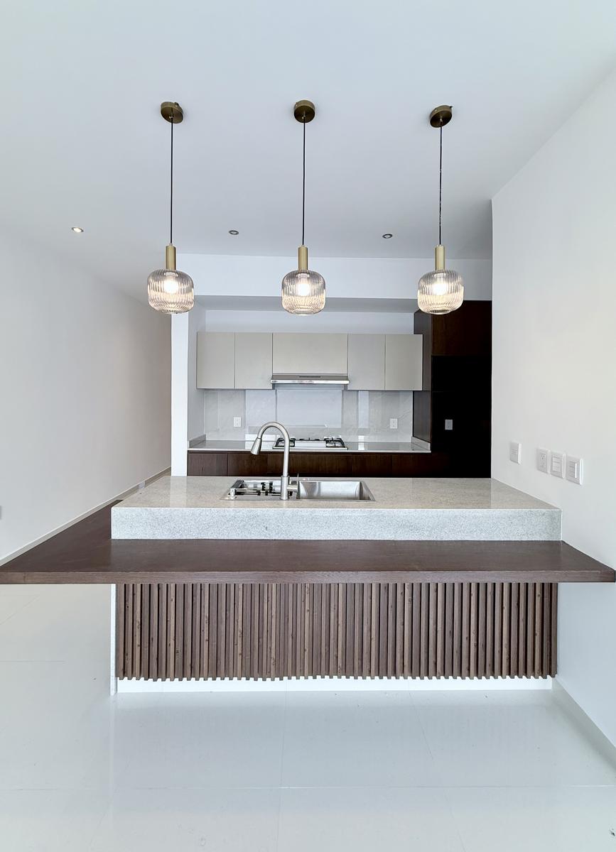 Cocina integral con barra de granito, parrilla, campana y barra desayunador