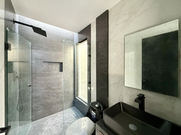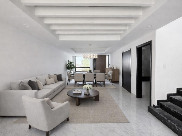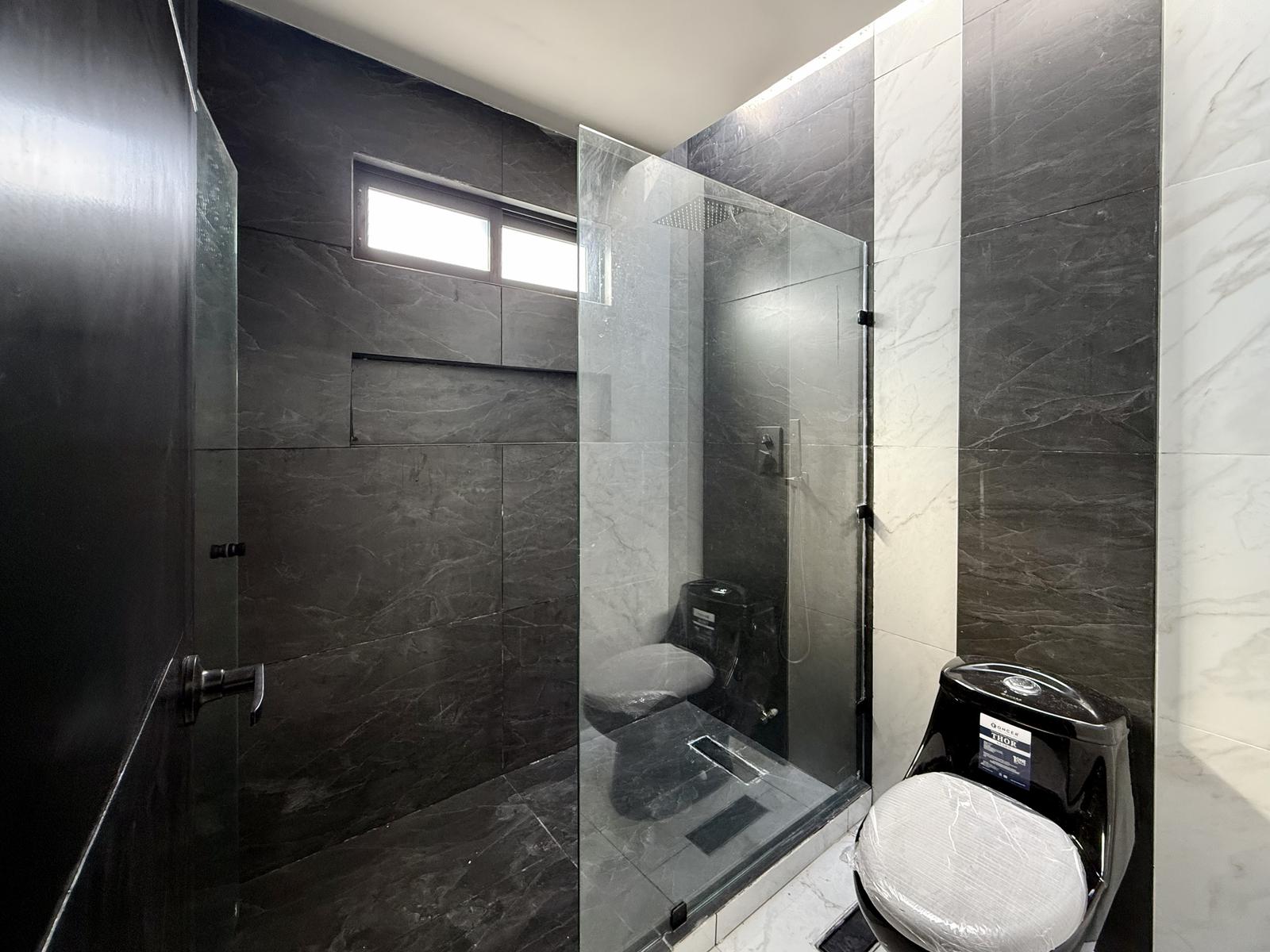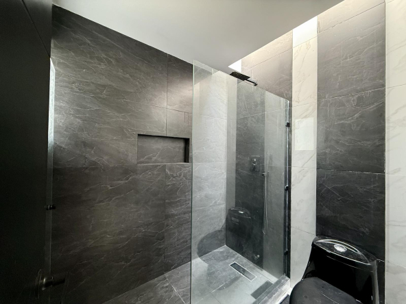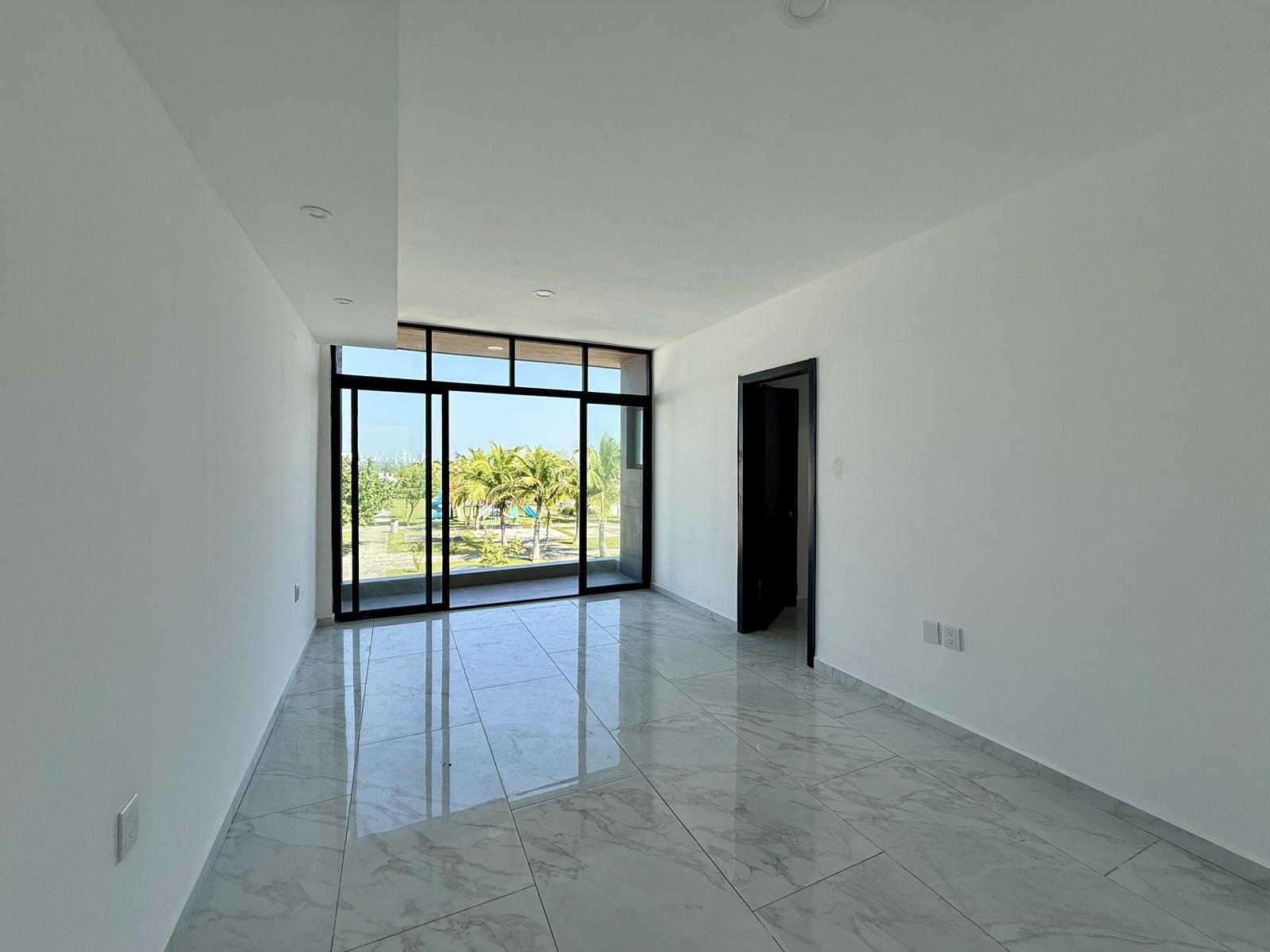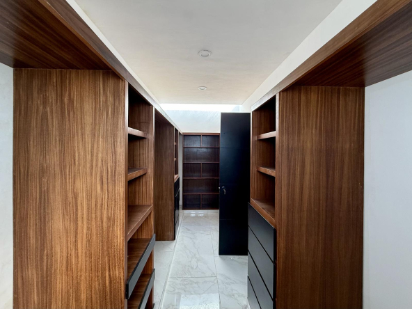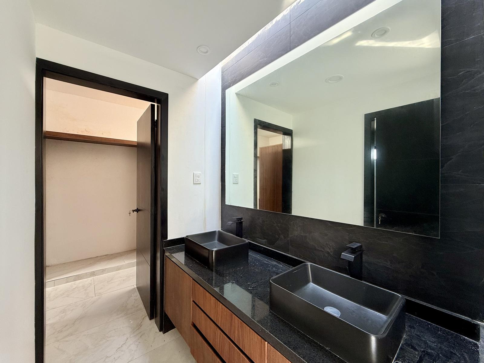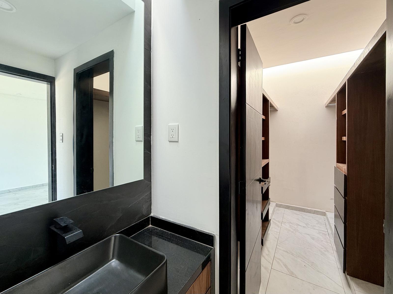 Cocina integral con barra de granito, parrilla, campana, hornos, refrigerador, enfriador de vinos e isla desayunador