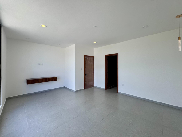 1 Habitación principal con mueble decorativo para TV, baño completo y vestidor