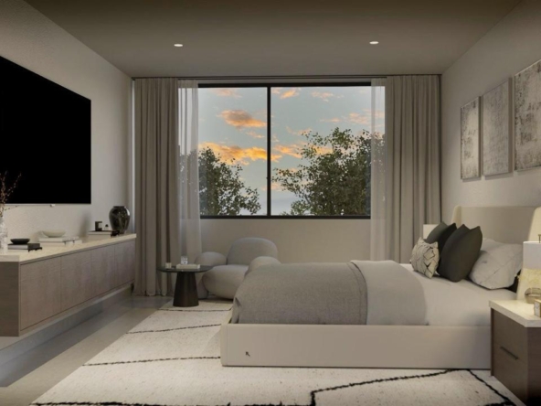 Cocina con barra de granito, parrilla, campana y barra desayunador