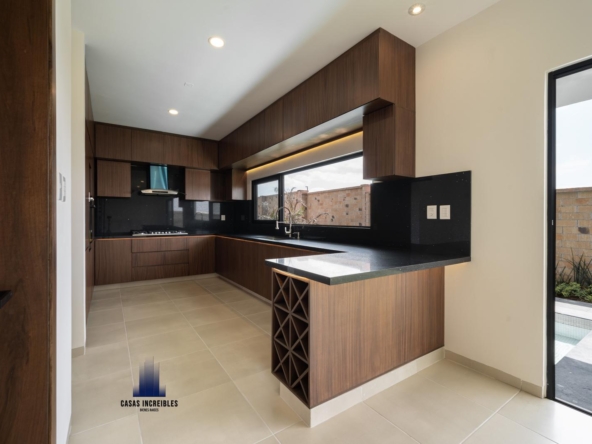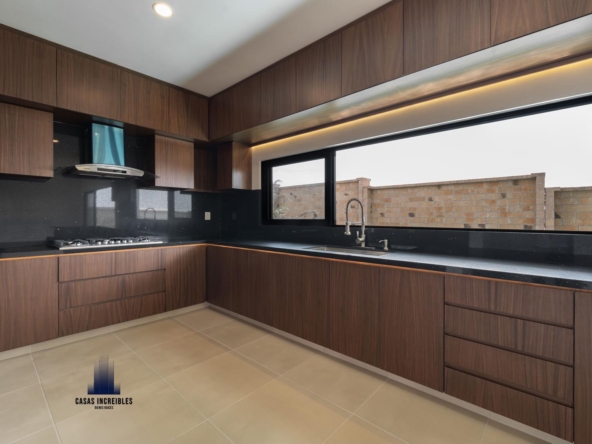 -Cocina integral con barra de cuarzo parrilla, campana, horno convencional, alacena