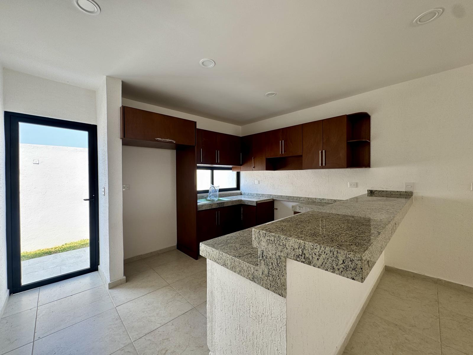Cocina integral con barra de granito y desayunador