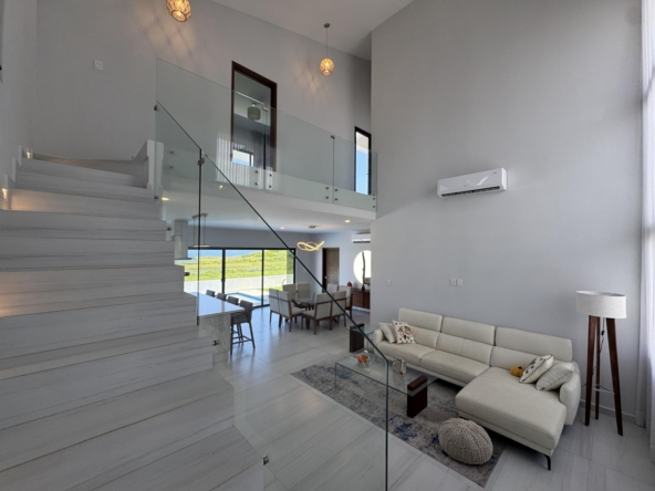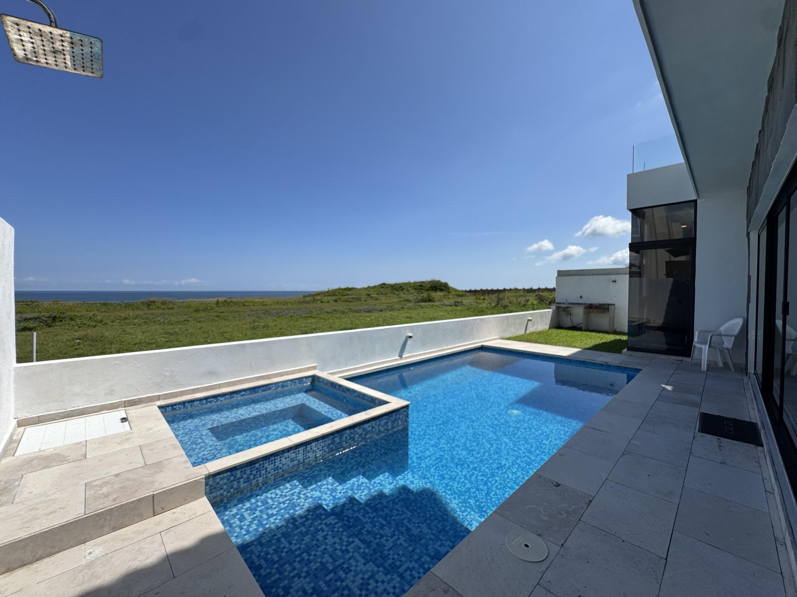 Vestíbulo con acceso a terraza con asador y vista al mar