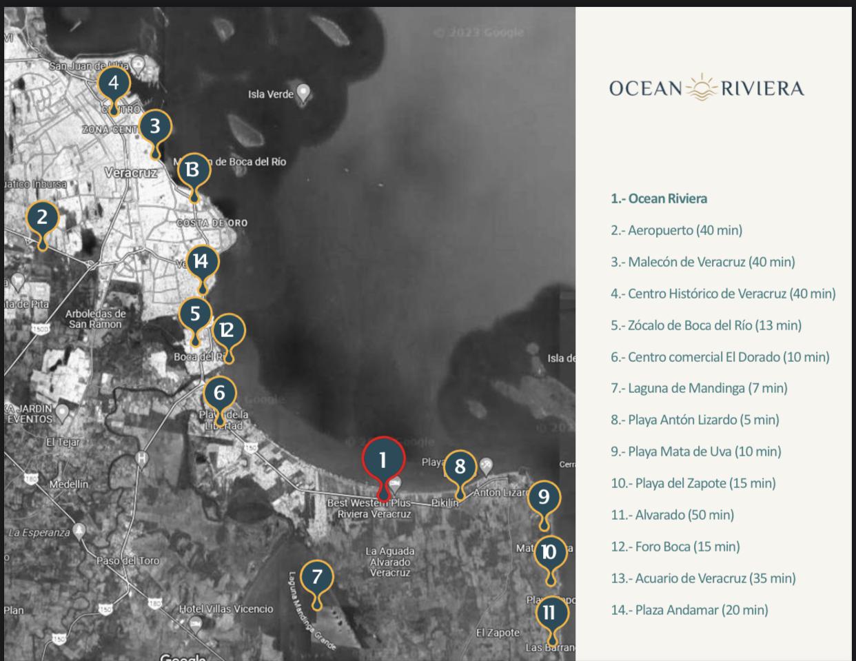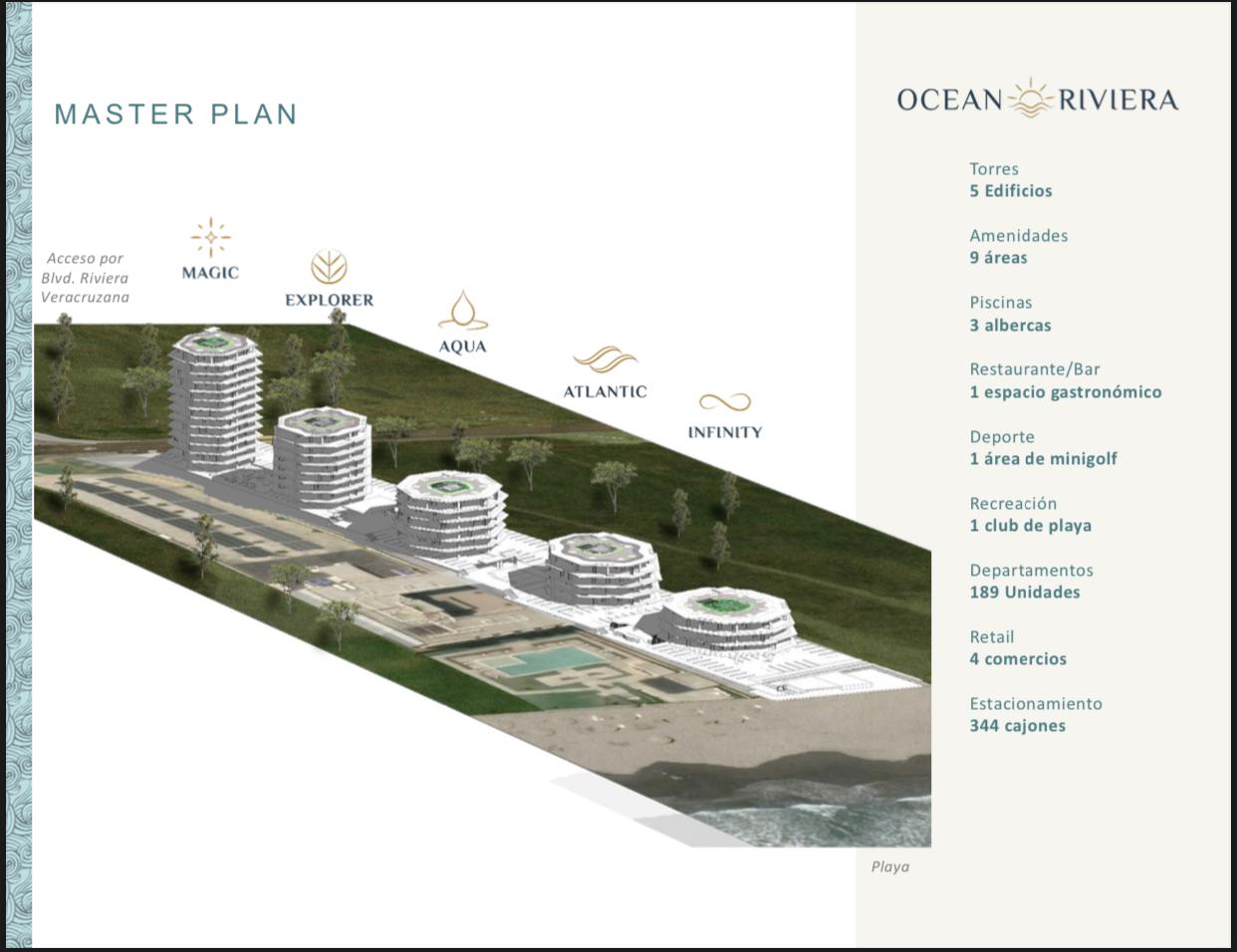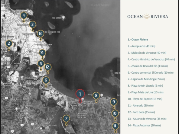 Su arquitectura distintiva y su carácter único generan una vibrante escena natural, lo que convierte a Ocean Riviera en un destino icónico en la Riviera Veracruzana.